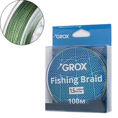 Плетенный шнур для рыбалки леска плетенка GROX 4X 0,20х100м 16,1кг, 1/500