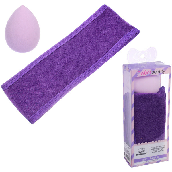 Набор косметический повязка и спонж "FRIDA", цвет фиолетовый, 17,5*7см