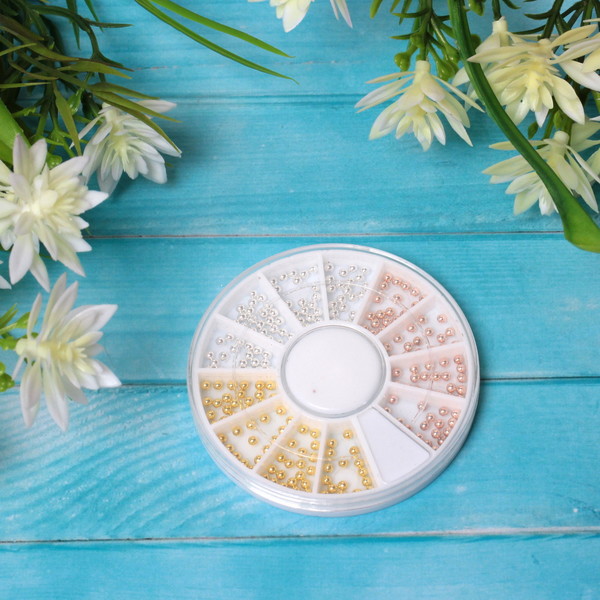 Украшение для нейл-арта "Nail Art Design", бусинки, цвет золото, серебро и бронза, в пакете, 7*7см