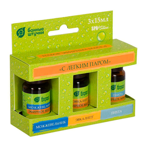 Набор эфирных масел Банные штучки "С легким паром" пихта, можжевельник, эвкалипт, 3 масла по 15 мл