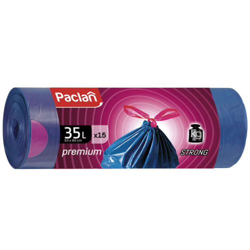 Мешки для мусора 35 л 15 шт 30мкм (двойной слой, с завязками) PACLAN PREMIUM (1/30)
