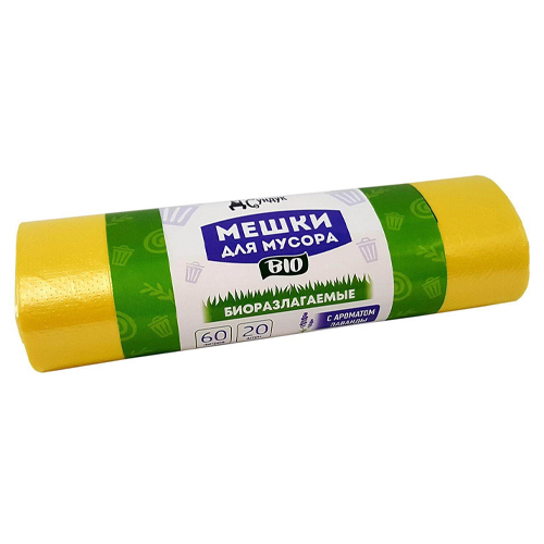 Мешки для мусора биоразлагаемые 60 л в рулоне, 20 шт, 7 мкм, желтые ароматизированные Домашний Сундук ДС-284, шоу бокс