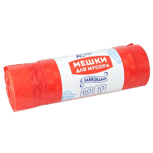 Мешки для мусора с завязками 60 л, 10 шт, 24 мкм Домашний Сундук ДС-169 красные, шоу бокс