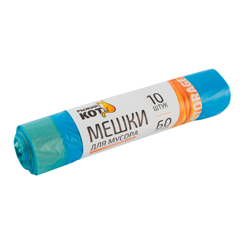 Мешки д/мусора "РЫЖИЙ КОТ" 60л (10шт./рул.) с завязками, ПНД, синие