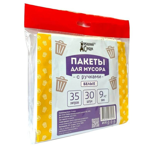 Пакеты для мусора "Домашний Сундук" с ручками, 35 л в пласте 30 шт 12 мкм белые ДС-429