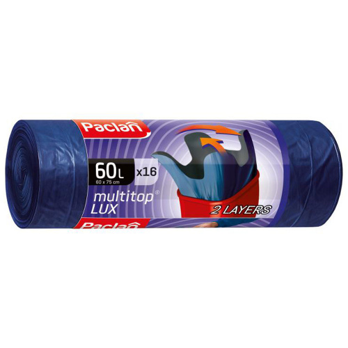 Мешки для мусора 60 л 16 шт 30мкм, двойной слой, с ручками, PACLAN MULTITOP LUX, 1/20