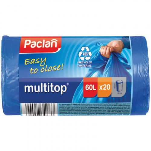 Мешки для мусора 60 л 20 шт 14мкм, двойной слой, с ручками, PACLAN MULTITOP, 1/24