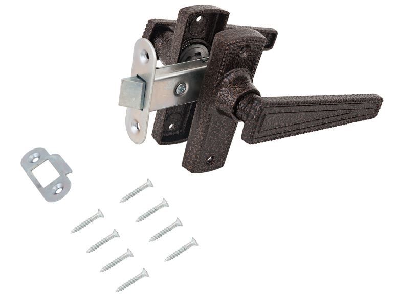 Защёлка с фалевыми ручками для установки на деревянные межкомнатные двери. Материал корпуса - сталь оцинкованная, материал защелки и ручек - ЦАМ. Удаление ключевого отверстия - 54 мм. Габариты корпуса - 66х25х11 мм. Длина ручек - 120 мм.