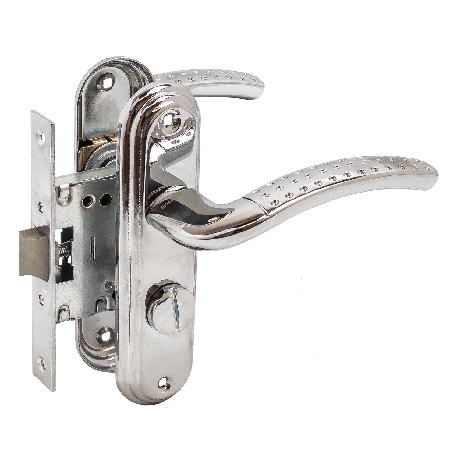 Защелка врезная с механизмом дополнительного запирания. Предназначена для дверей сантех.узлов и прочих помещений, где необходима фиксация изнутри. Толщина дверного полотна: 35-45мм. Материалы: корпус - сталь, ручки - алюминиевый сплав,