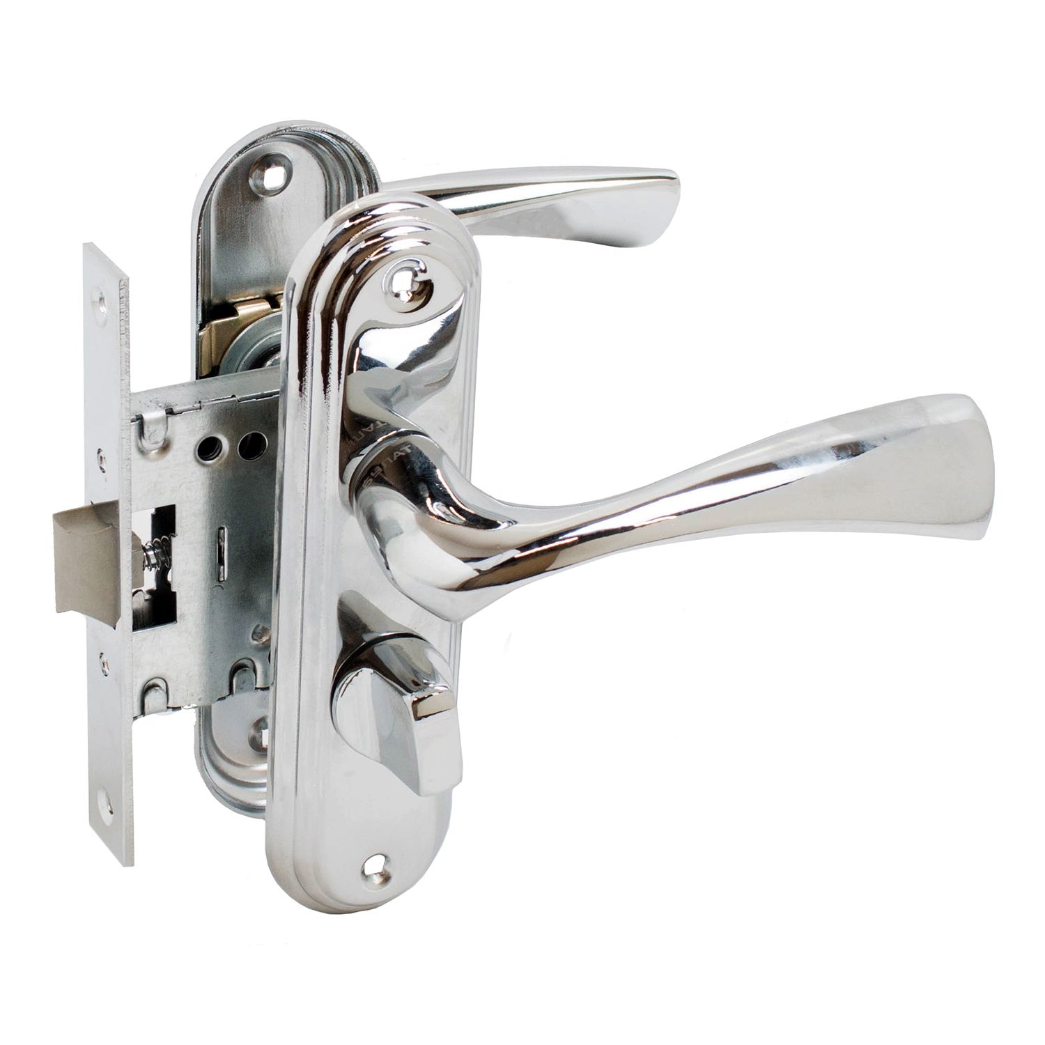 Защелка врезная с механизмом дополнительного запирания. Предназначена для дверей сантех.узлов и прочих помещений, где необходима фиксация изнутри. Толщина дверного полотна: 35-45мм. Материалы: корпус - сталь, ручки - алюминиевый сплав,