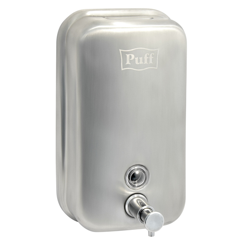 Дозатор для жидкого мыла из нерж. стали, матовый puff-8615m. Антивандальный, подходит для помещений с повышенной влажностью и резкими перепадами температур. Имеет скрытый крепеж.