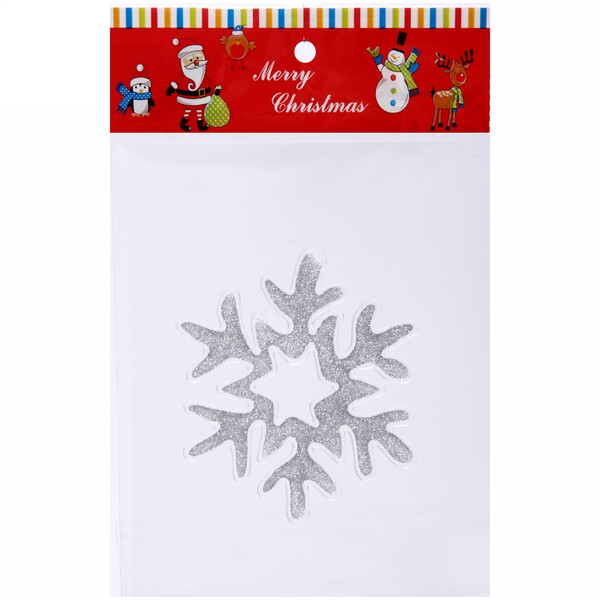 Наклейка на стекло 14*17 см,"Снежинка зимняя", Серебро