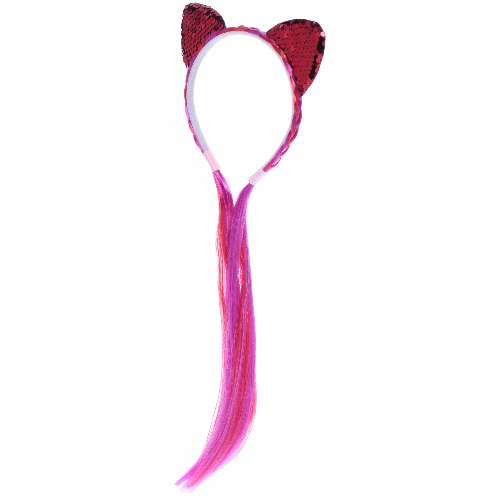 Ободок карнавальный с косой "Радужная кошка" 40 см, микс
