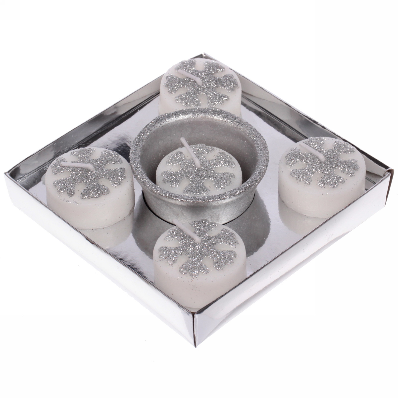 Набор свечей "Сказочные снежинки" 11,5х11,5х3 см, серебро