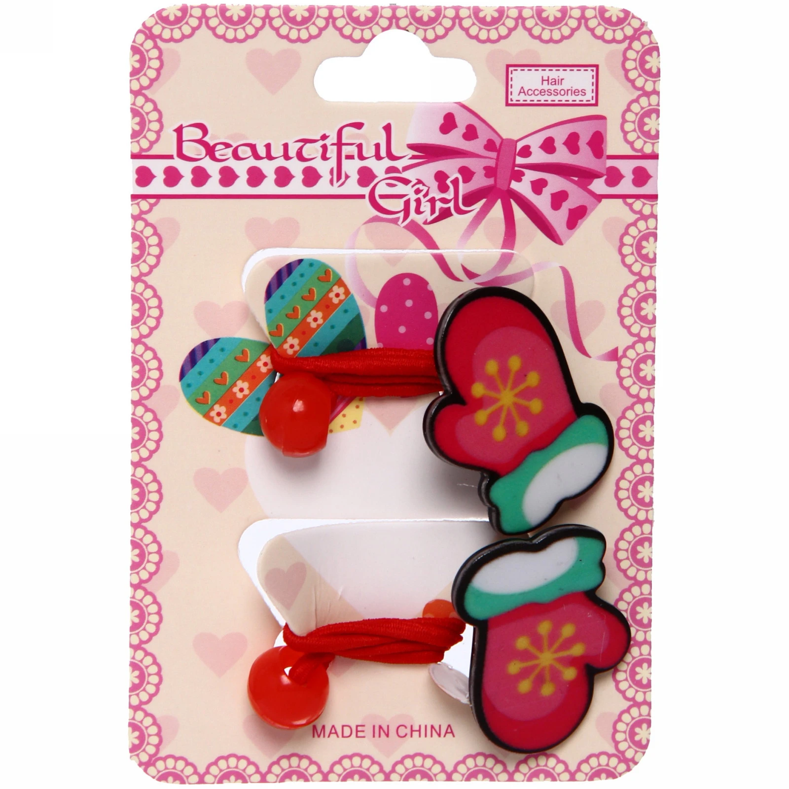 Резинки для волос детские 2шт. "Новогодняя Сказка - Варежки", цвет красный, d-9см