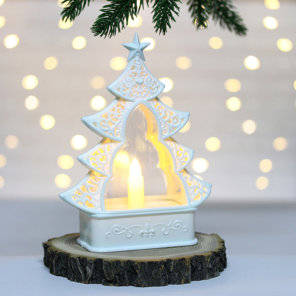 Сувенир с подсветкой "Волшебная ёлочка" 12,5*5,3*16,5 см, Белый (работает от батареек 3*ААА)