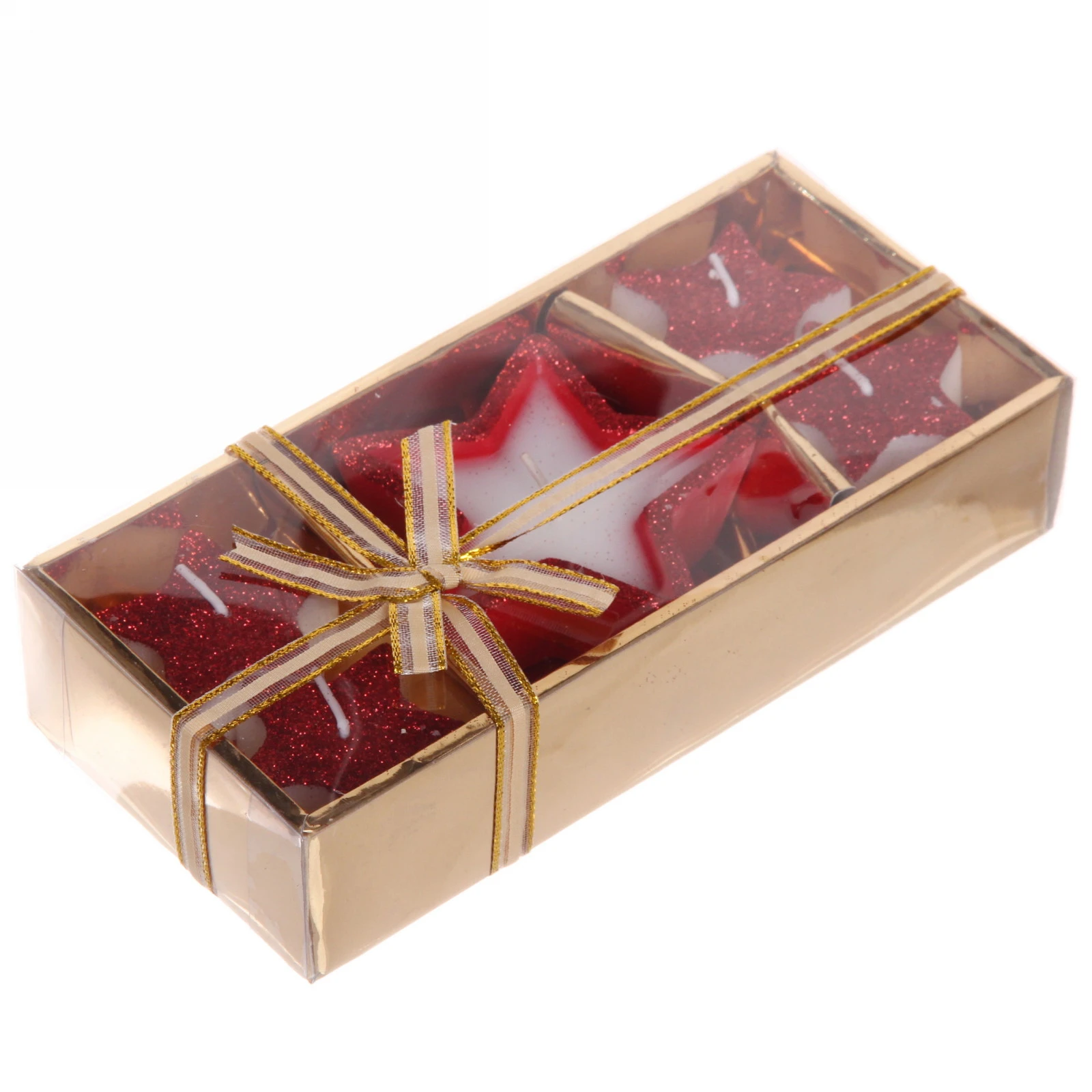 Свечи новогодние "Звездный дождь" 18*9 см (набор 5 шт), красный