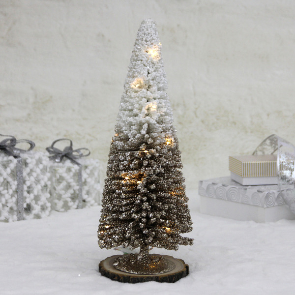 Сувенир с подсветкой "Волшебная ёлка" 15*40 см (батарейки 2 AA), Золото/Белый (свечение-теплый белый)