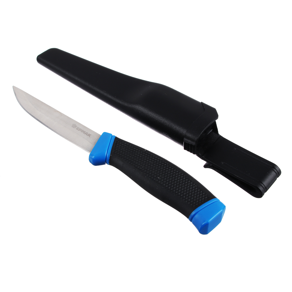 ЕРМАК Нож универсальный для рыбалки и туризма c ножнами, 21,5см, нерж. сталь, пластик