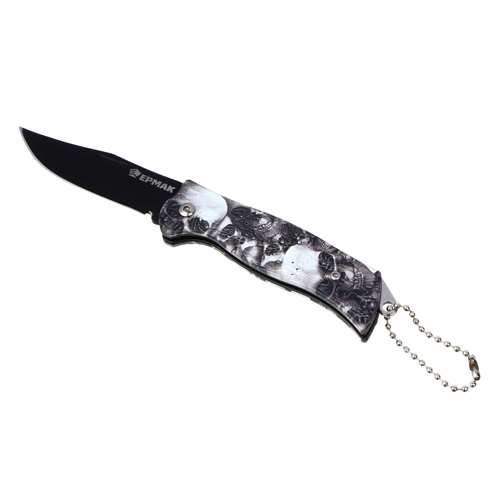 Туристический складной нож ЕРМАК 15,8 см – инструмент, который всегда должен быть под рукой во время поездок, туристических походов, рыбалки и отдыха на даче. Имеет небольшое лезвие длиной 6,5 см и рукоять 9,3 см. Эргономичная пластиковая рукоять удобно ложится в руку, не скользит и имеет оригинальный дизайн. Покрытие клинка обеспечивает дополнительную защиту от коррозии. Изделие оснащено цепочкой для фиксации на ремне или рюкзаке. Отверстие для цепочки может также использоваться для фиксации темляка.