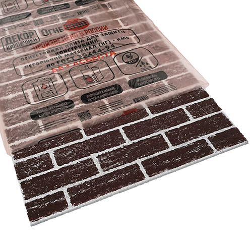 Плита огнеупорная армированная Декор Кирпичики короед КОРИЧНЕВЫЙ влагостойкая ОгнеСТОП 1200х600х9, 2/2