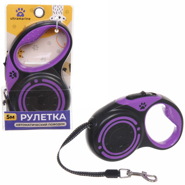 Поводок - рулетка для малых и средних пород собак "ЛАППИ", цвет фиолетовый, 5 метров, нагрузка до 15кг