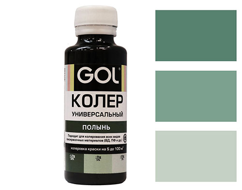 Паста колеровочная универсальная "GOL" (100 мл) применяется для колерования лакокрасочных материалов (красок, эмалей, лаков, шпатлевок, затирок, штукатурок, гипсовых смесей, пропиток для древесины, грунтовок), кроме составов на основе масел и применением пасту необходимо перемешать, хорошо встряхнув флакон. Ввести пасту в