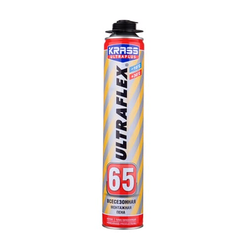 Монтажная пена KRASS ULTRAFLEX 65 пистолетная всесезонная 0,82 л служит для герметизации щелей, стыков и проемов при установке окон, дверей, при проведении кровельных работ и монтаже звукоизоляции.