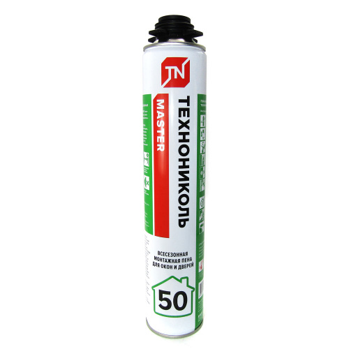 Пена монтажная профессиональная ТЕХНОНИКОЛЬ 50 MASTER представляет собой однокомпонентный полиуретановый материал в аэрозольной упаковке. Монтажная пена отличается хорошим первичным расширением, повышенным объёмом выхода пены. Пена обладает хорошей адгезией к большинству строительных материалов, за исключением фторопласта, силикона и полиэтилена. Монтажная пена имеет специальную формулу, которая обеспечивает постоянный неизменяемый объем пены с момента выпенивания до полного набора свойств.
