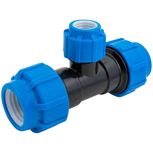 Тройник переходной компрессионный предназначен для устройства ответвления от основного трубопровода ПНД на трубопровод меньшего диаметра. Используется в системах питьевого и технического водоснабжения, орошения (полива).