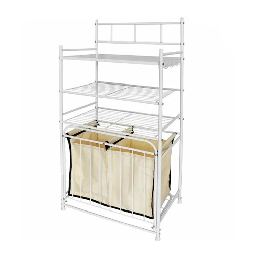 Стеллаж с двойной корзиной для белья 3-х ярусный, белый