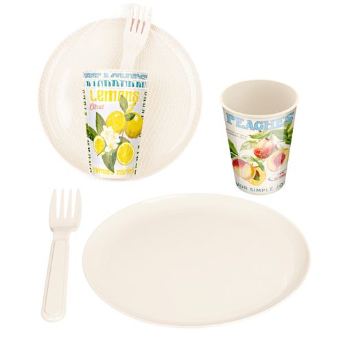 Набор для пикника Homver 223159225/01, 9 предметов на 3 персоны с декором Фруктовый сад, светло-бежевый