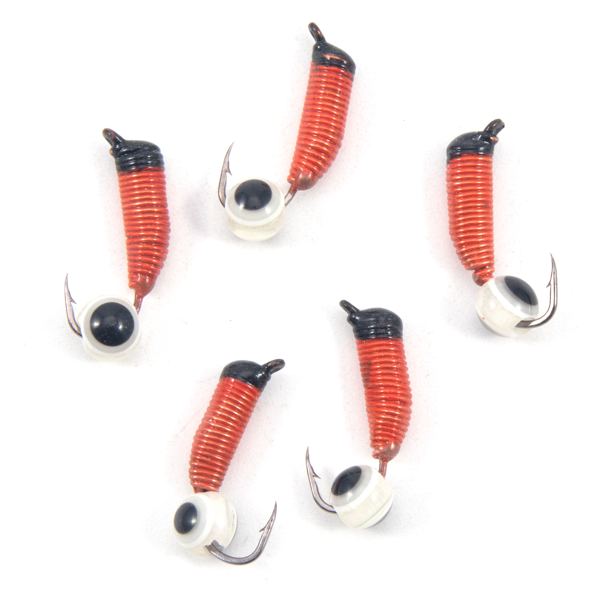 Мормышка вольф. безнасадочная "ЯМАН" Ручейник №5, d-2 мм, L-9.5 мм, вес 0,80 гр., рыбий глаз, цв. красный (уп. 5 шт.)