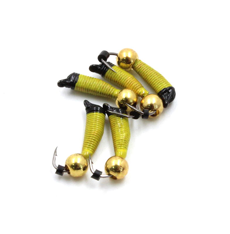 Мормышка вольф. безнасадочная "ЯМАН" Ручейник №5, d-2 мм, L-9.5 мм, вес 0,80 гр., латунный шар, цв. желтый, (уп.5 шт.)