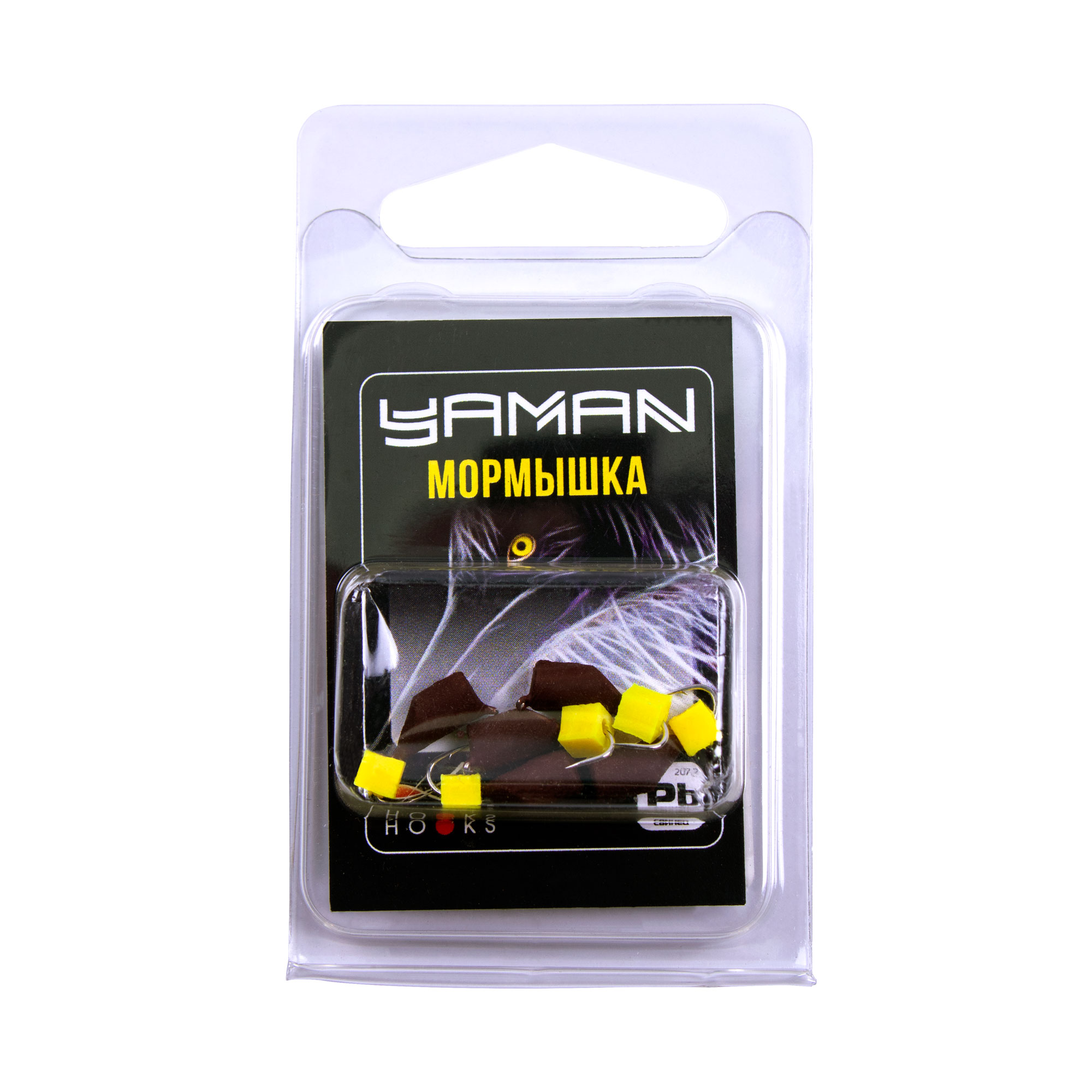 Мормышка безнасад. ЯМАН "Гвоздекубик", матовый шоколад, d-4 мм, вес 1,2 г, ядреный кубик желтый (уп. 5 шт.)