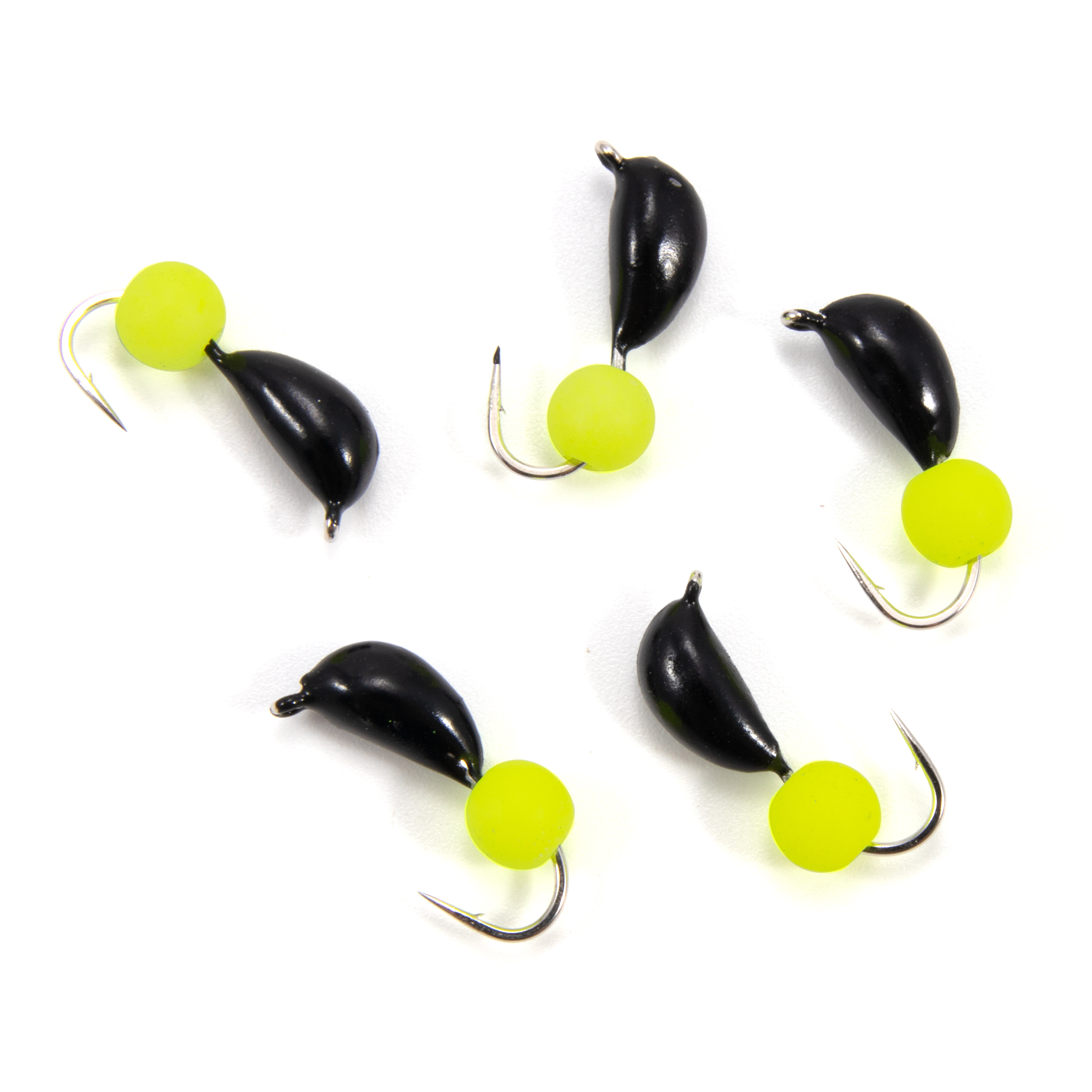 Мормышка безнасад. ЯМАН "Банан" черный, d-3,5 мм, вес 0,7 г, шарик желтый неон (уп. 5 шт.)