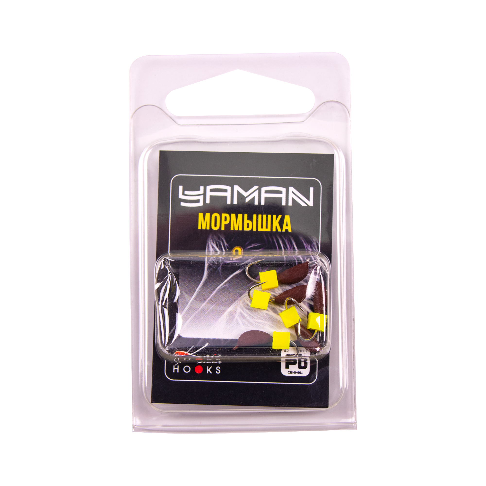 Мормышка безнасад. ЯМАН "Банан" матовый шоколад, d-3 мм, вес 0,5 г, ядреный кубик желтый (уп.5 шт)