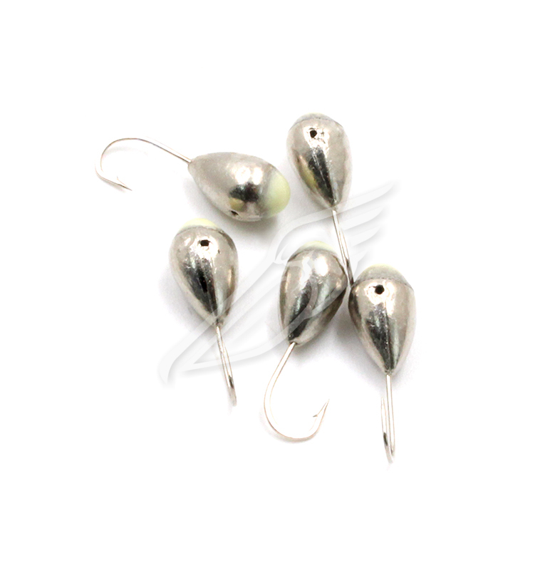Мормышка "ЯМАН" капля с отв.,цв.NL с фосф. пяткой, d 4, вес 0,45 г (уп. 5 шт.)