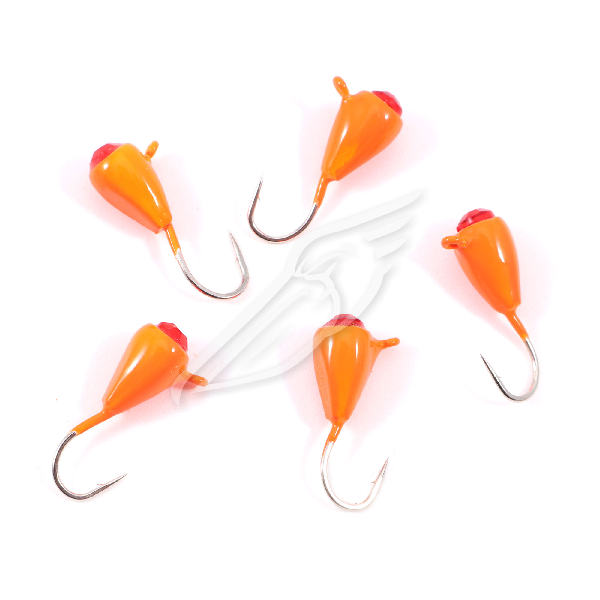 Мормышка вольф"ЯМАН"Капля с ушк. + кр. камень, р.4, вес 1 г, цв.оранж.(уп.5 шт.)
