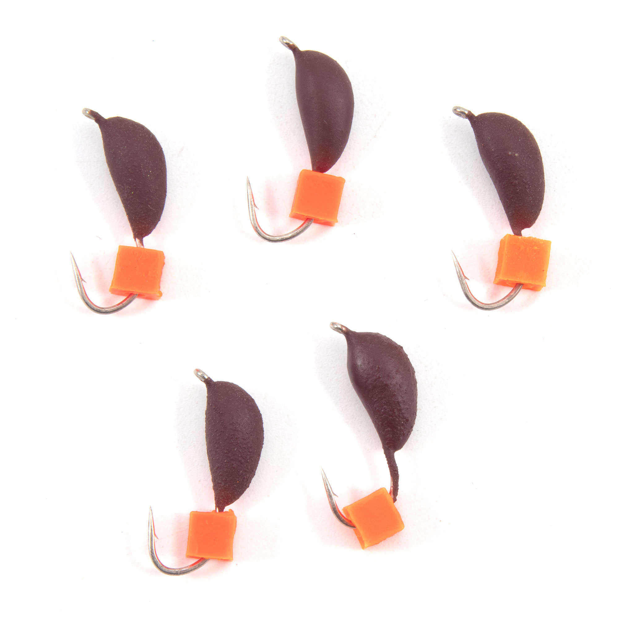 Мормышка безнасад. ЯМАН "Банан" матовый шоколад, d-4 мм, вес 1 г, ядреный кубик красный (уп.5 шт)