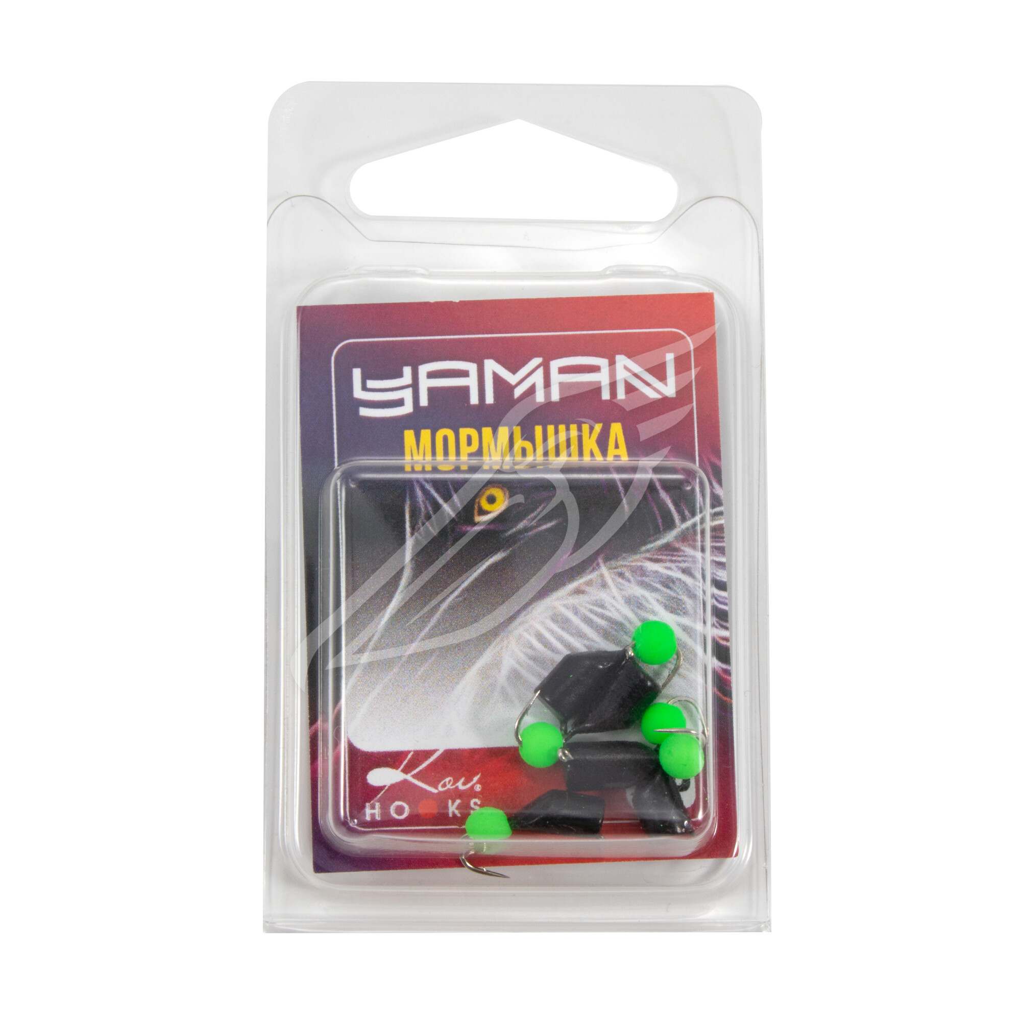 Мормышка безнасад. ЯМАН "Гвоздешарик" черный, d-3,5 мм, вес 1 г, шарик зеленый неон (уп. 5 шт.)