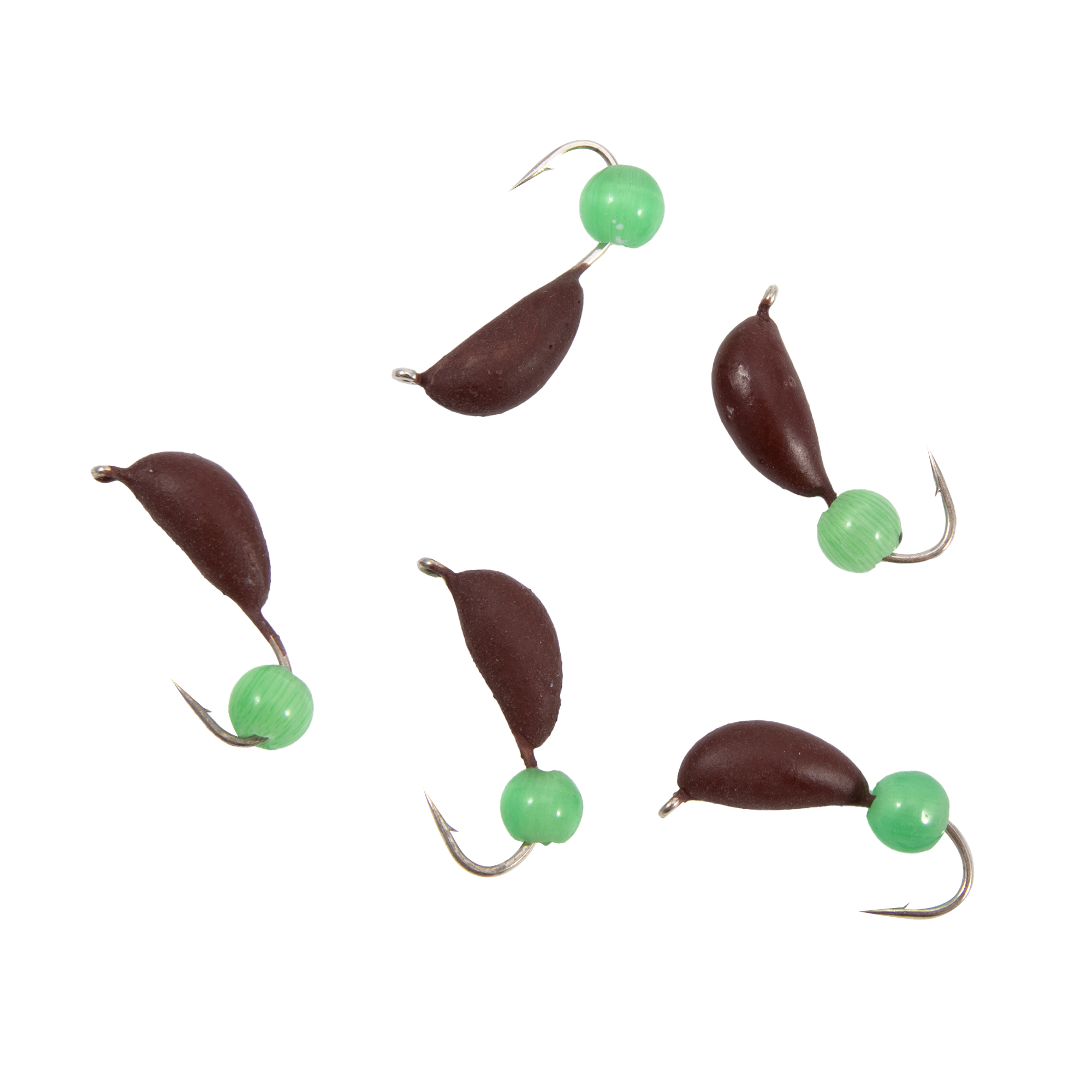 Мормышка безнасад. ЯМАН "Банан" матовый шоколад, d-4 мм, вес 1 г, кошачий глаз зеленый (уп.5 шт)