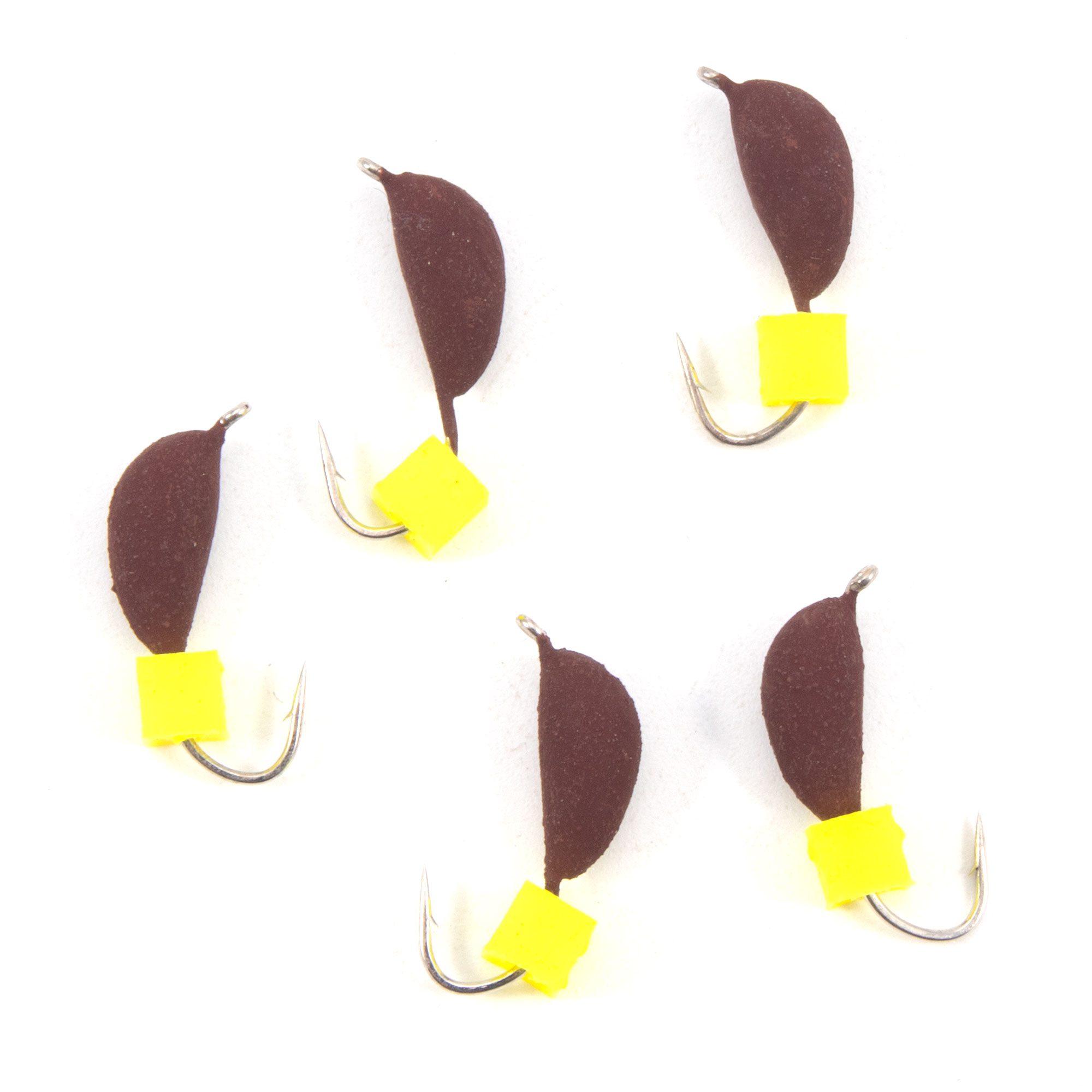 Мормышка безнасад. ЯМАН "Банан" матовый шоколад, d-4 мм, вес 1 г, ядреный кубик желтый (уп.5 шт)