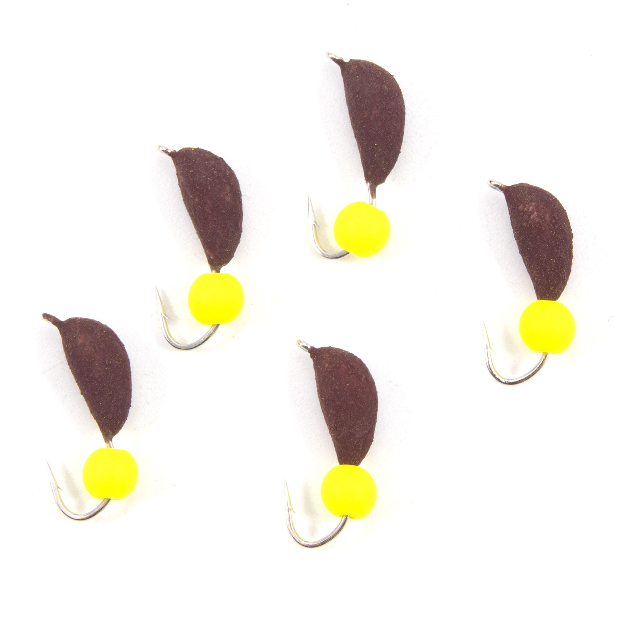 Мормышка безнасад. ЯМАН "Банан" матовый шоколад, d-4 мм, вес 1 г, шарик желтый неон (уп.5 шт)