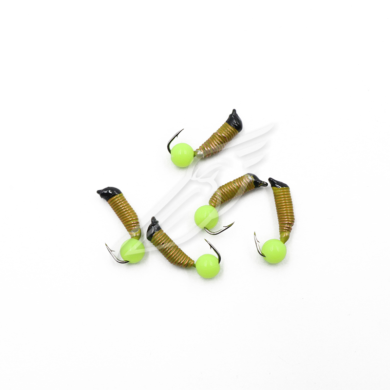 Мормышка вольф. безнасадочная "ЯМАН" Ручейник №3, d-1.5 мм, L-8.5 мм, вес 0,45 гр., фц. желтый шар,