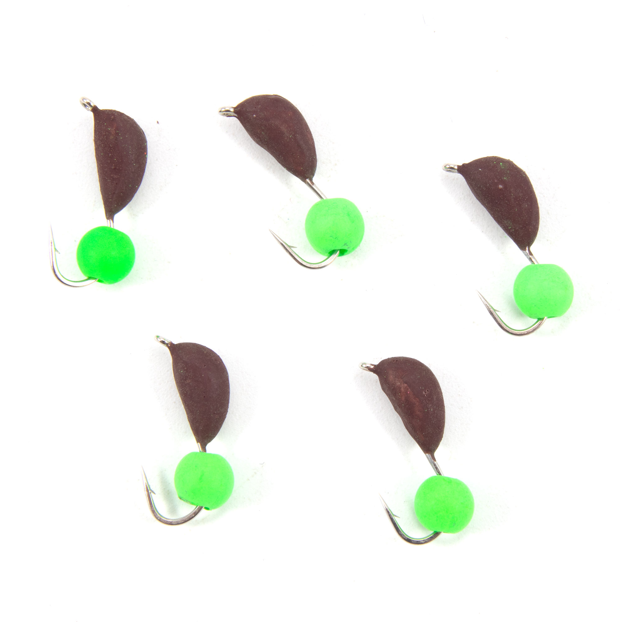 Мормышка безнасад. ЯМАН "Банан" матовый шоколад, d-3,5 мм, вес 0,7 г, шарик зеленый неон (уп.5 шт)