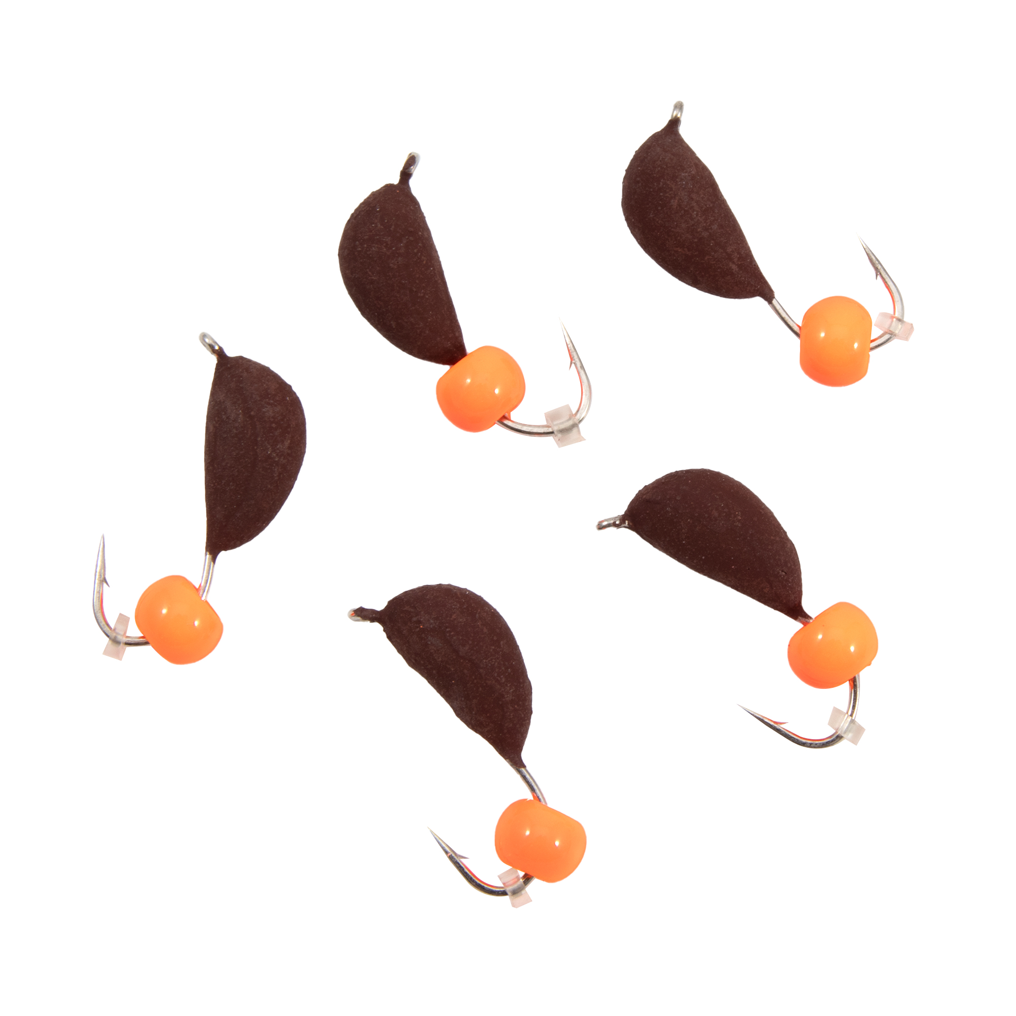 Мормышка безнасад. ЯМАН "Банан" матовый шоколад, d-4,5 мм, вес 1,3 г, шарик оранжевый неон (уп. 5 шт)