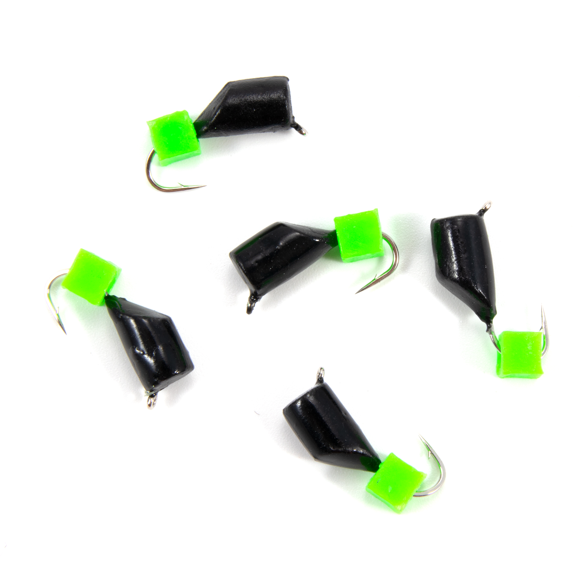 Мормышка безнасад. ЯМАН "Гвоздекубик" черный, d-4 мм, вес 1,2 г, ядреный кубик зеленый (уп. 5 шт.)