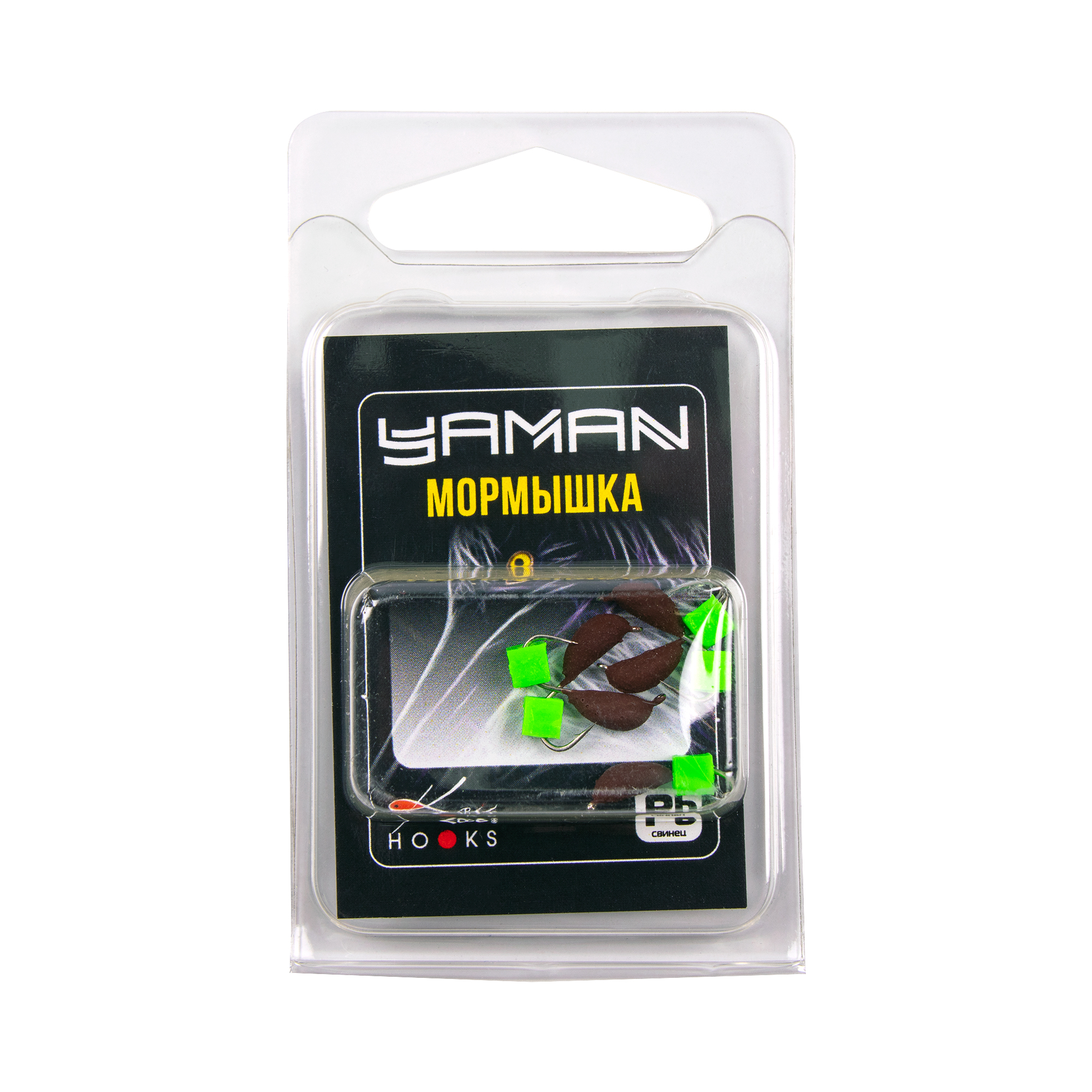Мормышка безнасад. ЯМАН "Банан" матовый шоколад, d-3 мм, вес 0,5 г, ядреный кубик зеленый (уп.5 шт)
