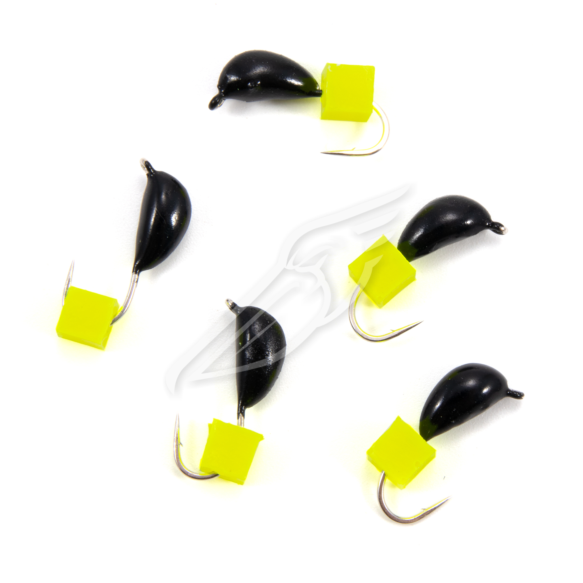 Мормышка безнасад. ЯМАН "Банан" черный, d-3,5 мм, вес 0,7 г, ядреный кубик желтый (уп. 5 шт.)